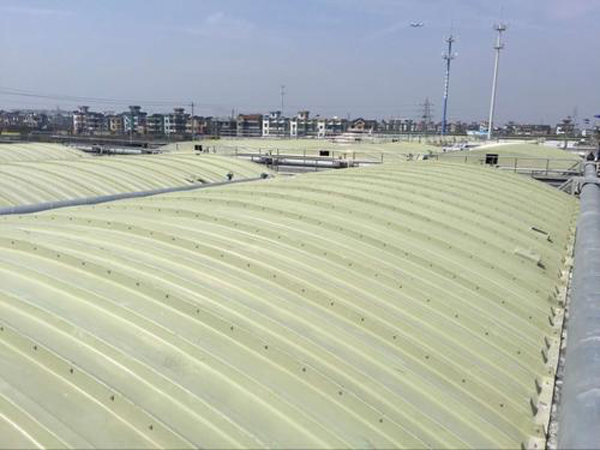 3、轻质高强、安装方便:玻璃钢集气罩比重仅为钢制品的1/3至1/4,固化程度高,载荷负重大,强度高,适用于大跨度池体,同时盖板可分为若干小块,便于运输、安装。